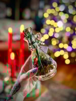 Filled with ginger, juniper berries, marigold, chamomile, hydrangea, orange, pyrite, green aventurine and moss agate.